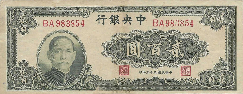 | China | 200 Yuan | ID: 1944-1944 TNID: 1944 |