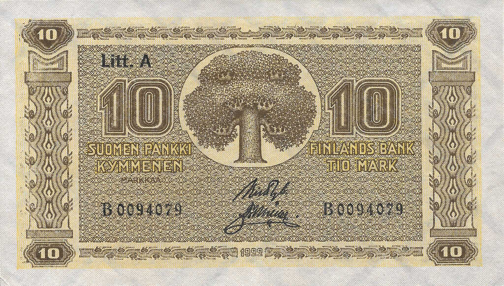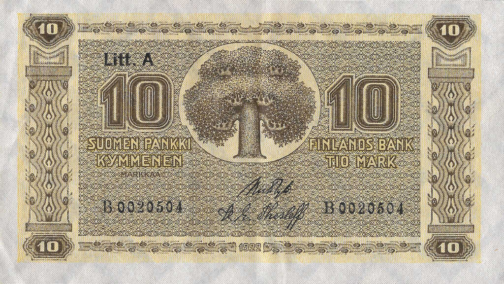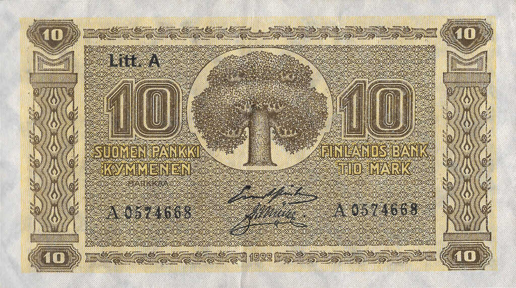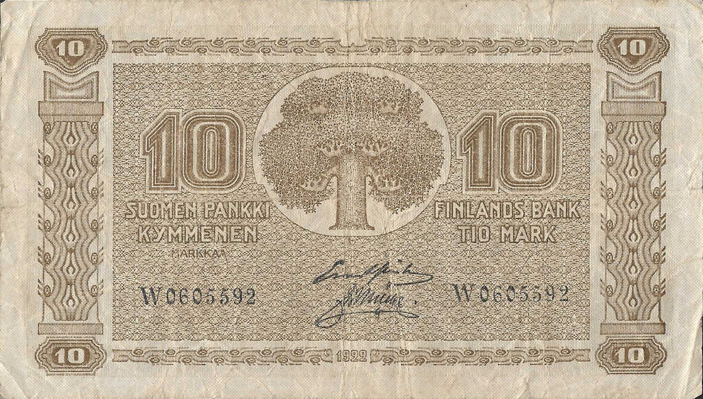 | Finland | 10 Markka | ID: 22/01/1923-1926 TNID: 1922 (1926) |