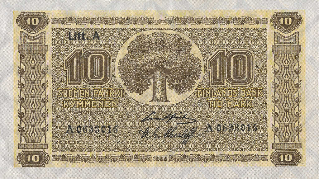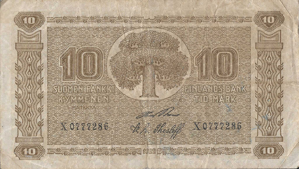 | Finland | 10 Markka | ID: 22/01/1923-1926 TNID: 1922 (1925) |