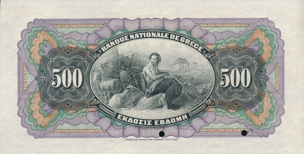 | Greece | 500 Drachma | ID: 1872-05/08/1886 | P-0033s |