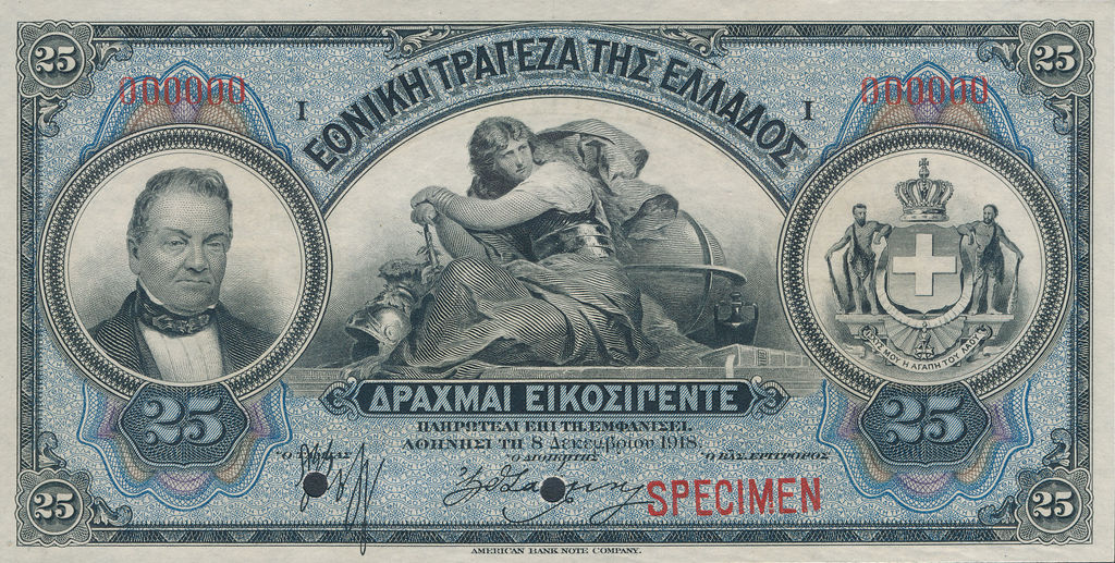 | Greece | 25 Drachma | ID: 12/04/1922 | P-0065s 61b |