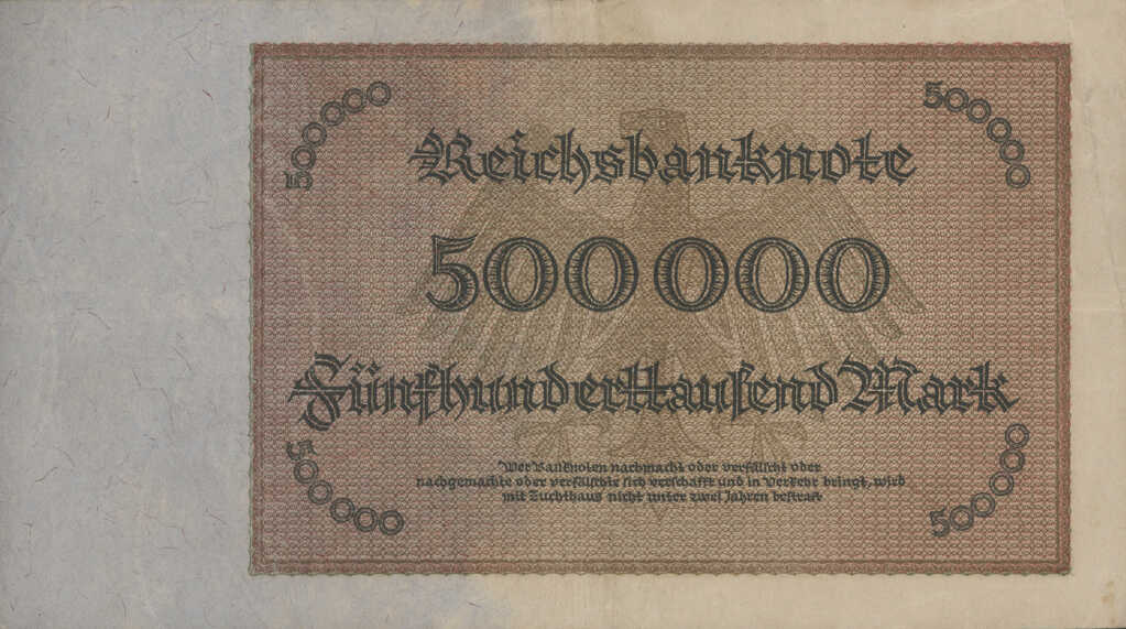 | Germany | 500,000 Mark | ID: 1923-1923 TNID: 01/05/1923 |